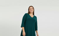 Ontdek de elegantie van Pine Green; een diepe, verfijnde tint die een vleugje luxe toevoegt aan je garderobe. Onze nieuwe Dolce-stijlen in deze rijke tint zijn ontworpen om te stralen tijdens de feestdagen, maar zijn ook perfect geschikt voor werk of dagelijks gebruik. Ze zijn gemaakt van onze kenmerkende zachte en rekbare Dolce-stof en bieden zowel comfort als verfijning in elk detail. Deze minicollectie bestaat uit drie stijlen: twee elegante jurken en een tuniek versierd met subtiele strass-details. Eén jurk valt op door de prachtig uitlopende mouwen voor een sierlijk silhouet, terwijl de andere een flatterende V-hals heeft met delicate knoopjes.
